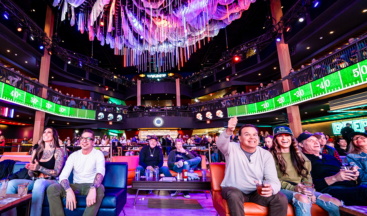 Huge screens, real-time tickers, bar bites, as good as being courtside.