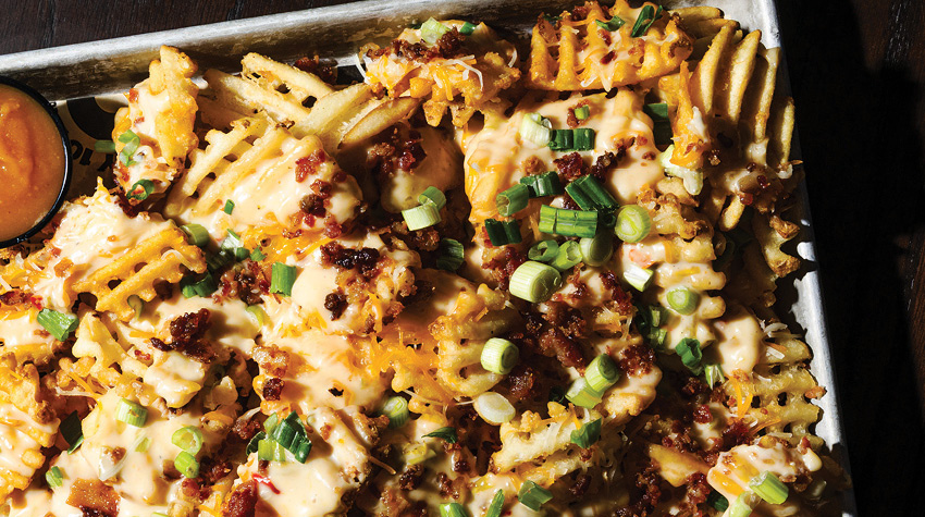 Crispy Waffle Fries, Cheddar and Jack Cheeses, Queso Blanco, Crispy Bacon, Green Onions