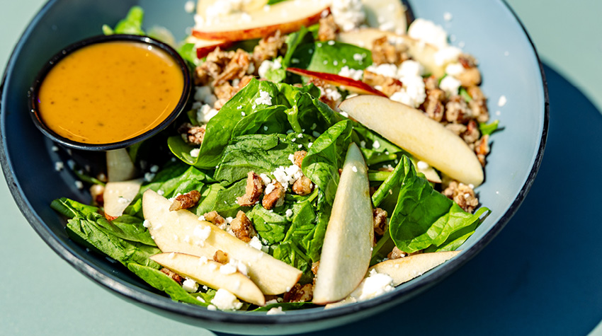 Baby Spinach, Red Delicious Apples, Candied Pecans, Feta Cheese,